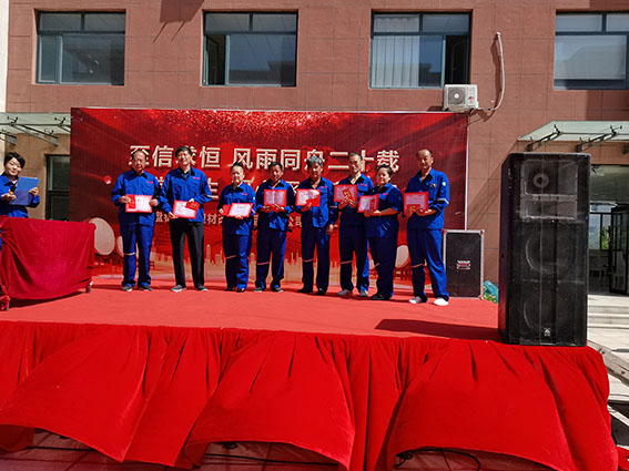公司总经理、工会主席为庆典致辞,庆典上员工们表演了精彩节目《感恩的心》等,为了感恩回报服务企业多年的老员工,公司还为每位服务十年以上的老员工颁发了《服务企业优秀员工》证书和奖金,还为每位员工颁发了精美的纪念品。