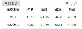 2015年8月4日国际原油价格表