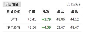 2015年9月2日国际原油价格表