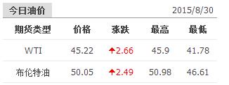 2015年8月30日国际原油价格表