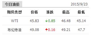 2015年9月23日国际原油价格表