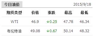 2015年9月18日国际原油价格表