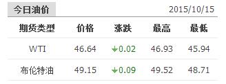 2015年10月15日国际原油价格表