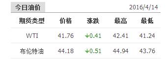 2016年4月14日国际原油价格表