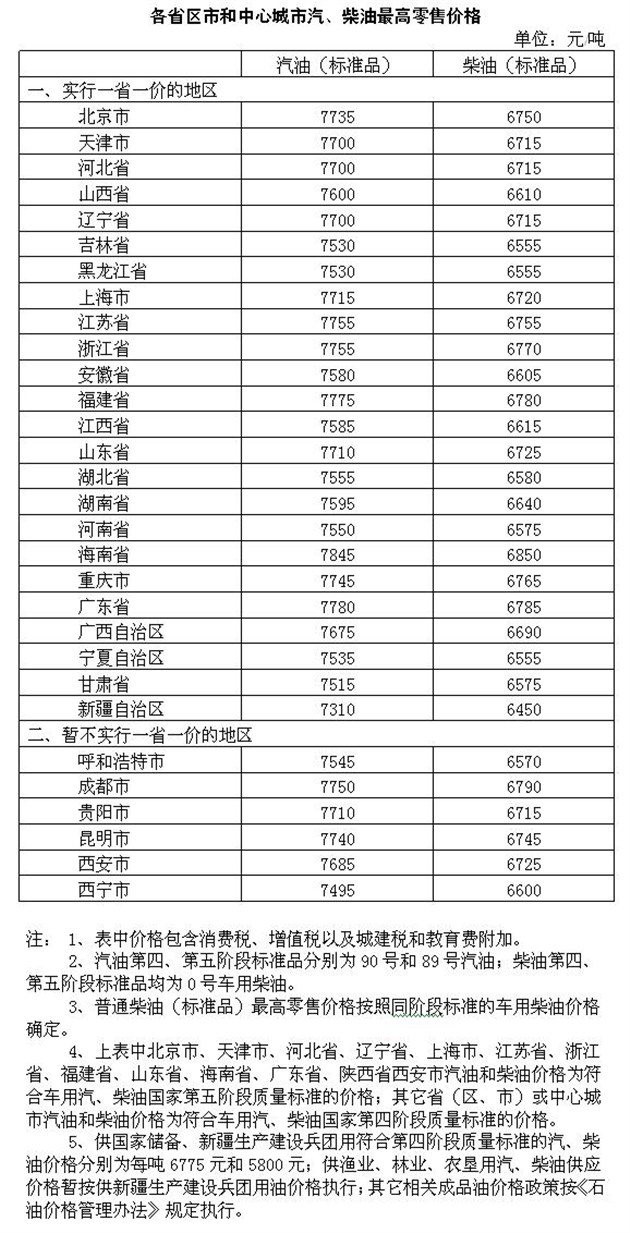 • 10月19日,国家发展改革委发出通知,我国成品油调价时间窗口再次开启,国内油价迎来年内第七次上调,也是最高涨幅:国内汽、柴油价格每吨分别上调355元和340元。预计93号汽油(京92号)每升上调0.28元,97号汽油(京95号)每升上调0.29元,京标0号柴油每升上调0.29元,调价执行时间为10月19日24时。