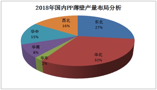 2018年国内薄壁产量布局分析发现,主要供应量集中在东北、华北、西北地区。其中华北地区供应量占全国首位,占国内薄壁注塑总供应量32%,其次为东北地区,东北地区占薄壁注塑总供应量27%。西北及东北薄壁注塑供应量高,主因神华宁煤、抚顺、辽通化工薄壁产量供应集中。而华北地区薄壁薄壁供应集中主要由联泓新材料、石家庄炼厂及东方宏业等企业。