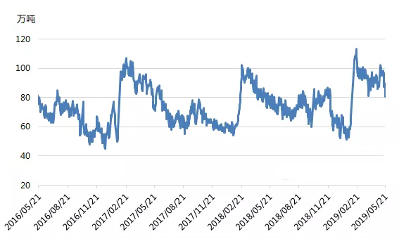 图1 2016-2019年石化库存对比图